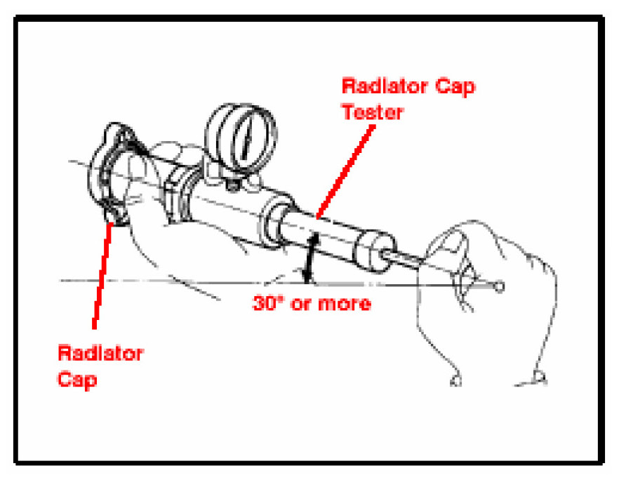 5. When using the radiator cap tester, tilt it more than 30 degrees.