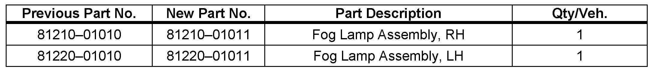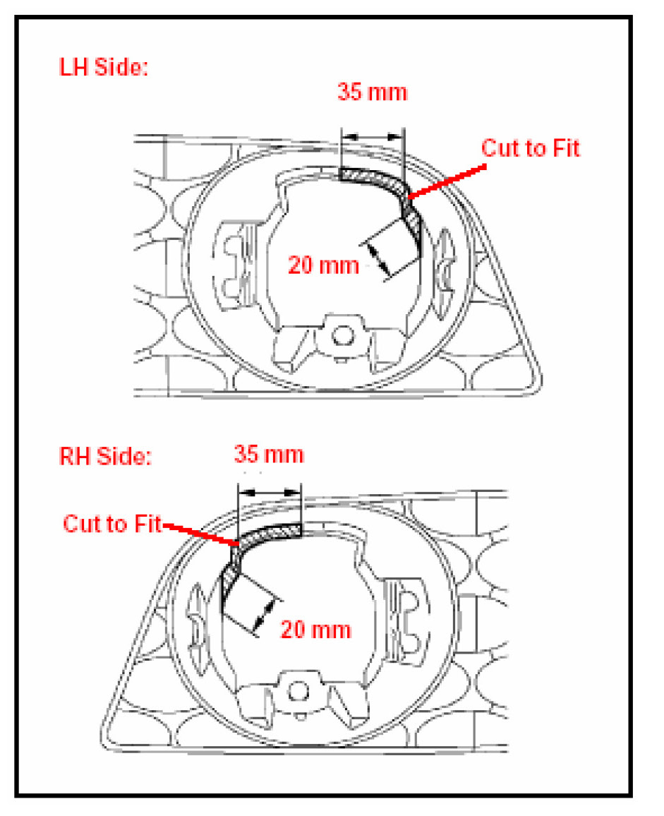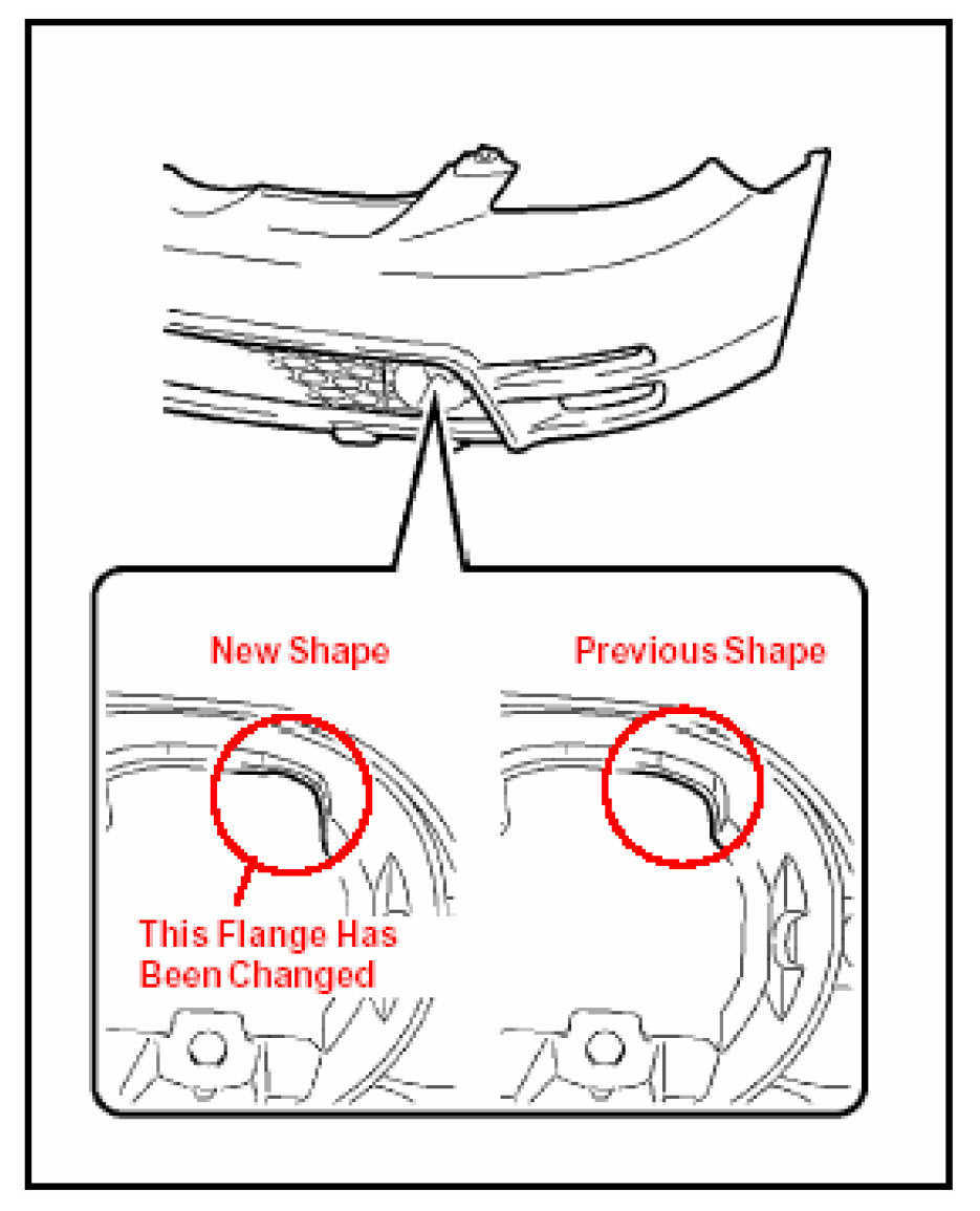 New style fog lights have been developed for the Matrix. The front bumper has been modified to accommodate this change. In order to install the new style fog lights into the old bumper design, the following procedures must be followed.