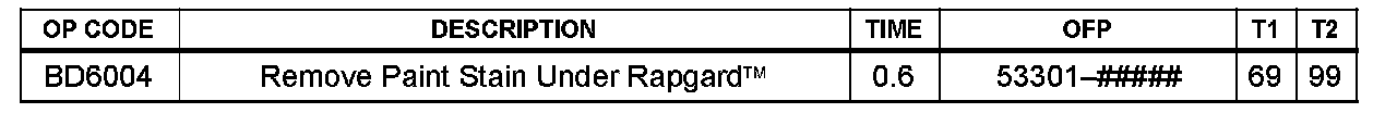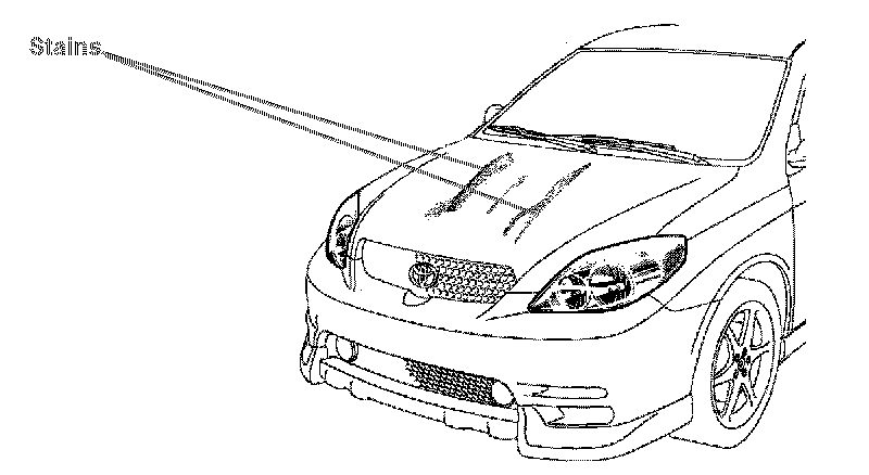 On some vehicles when RapgardTM is removed the paint may have a stained appearance. These stains appear to be under the clear coat and should not be considered a defect in the paint (clear coat or color coat). The stain patterns are usually under wrinkles in the RapgardTM. These wrinkles sometimes trap water and cause the paint to stain from the trapped moisture especially on horizontal surfaces such as the hood roof and trunk. Stains can be removed by heating the stained surface to remove the trapped moisture.