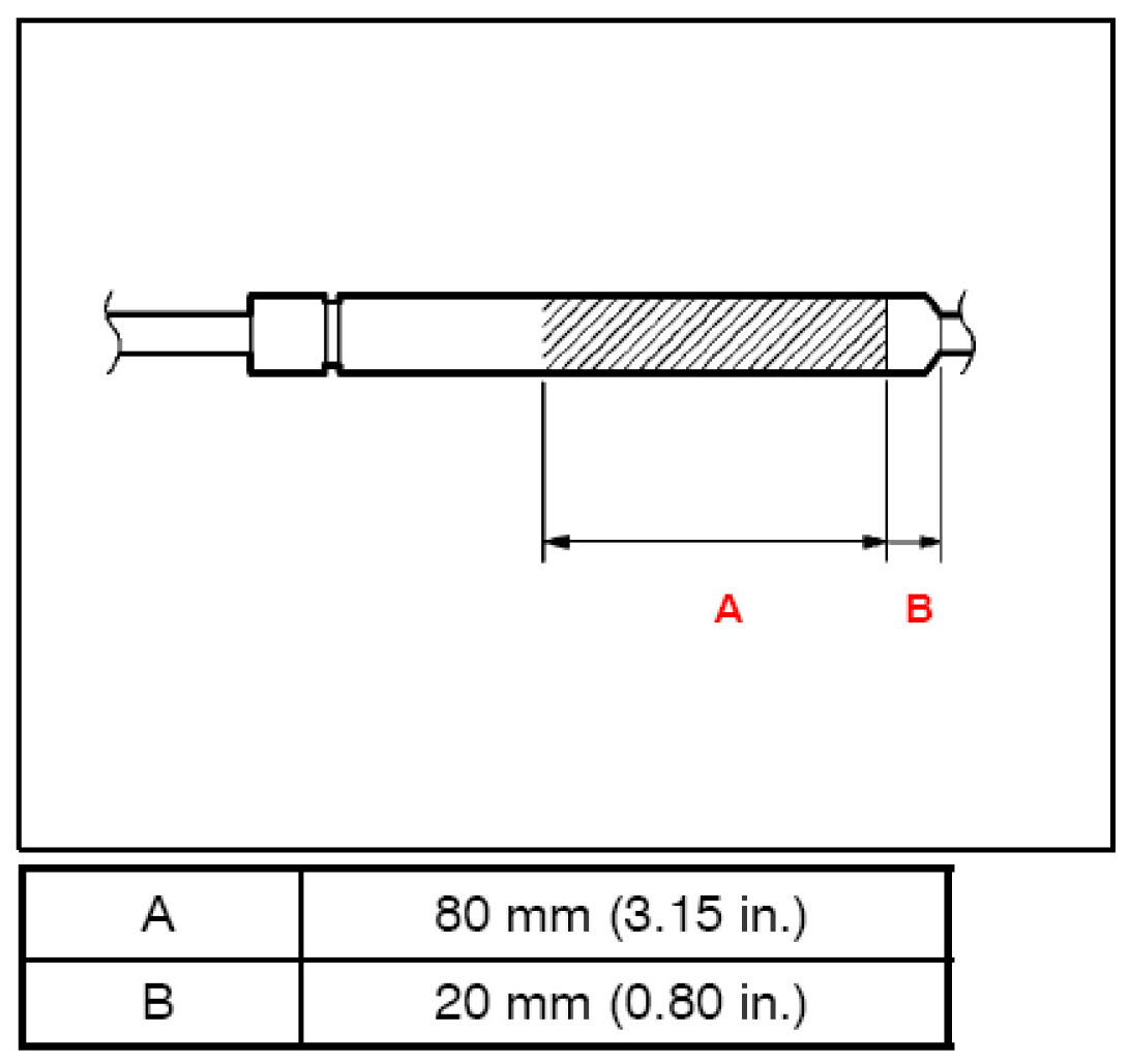 B. Wearing safety glasses, slowly release the gas charge by gradually cutting a hole (using a metal saw blade) in the stay body area marked A in the illustration to the right.