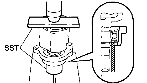 a. Using SST and a press, install the bearing case sub-assy to the inboard joint.