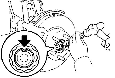 a. Using SST and a hammer, unstake the staked part of the hub LH nut.