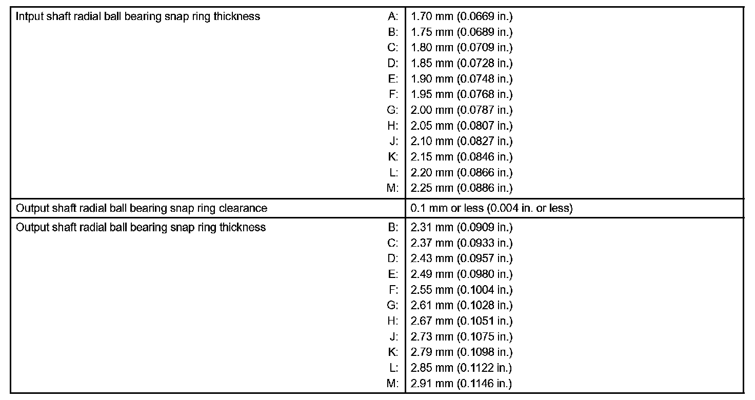 Manual Transmission/Transaxle - Service Data: