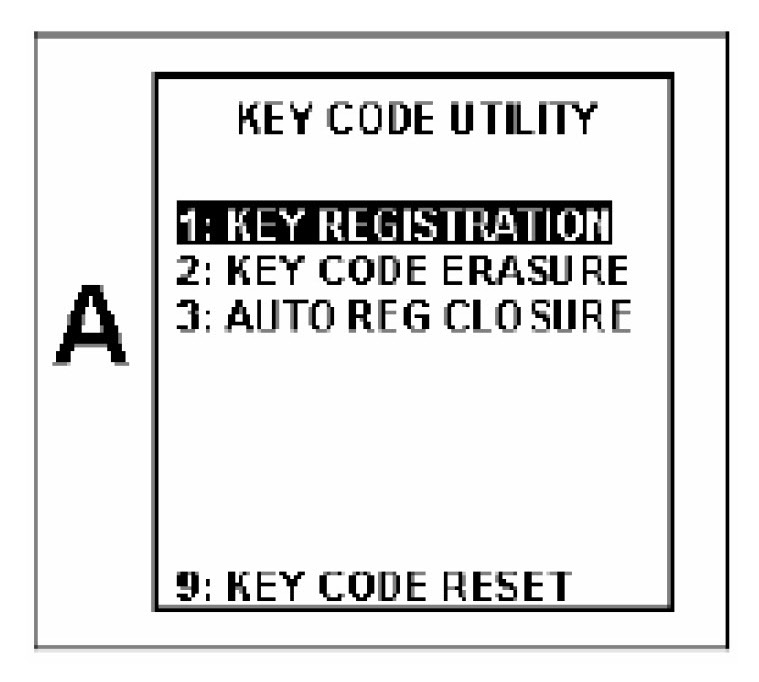 1. From the "KEY CODE UTILITY" menu (Screen A), select [1; KEY REGISTRATION]