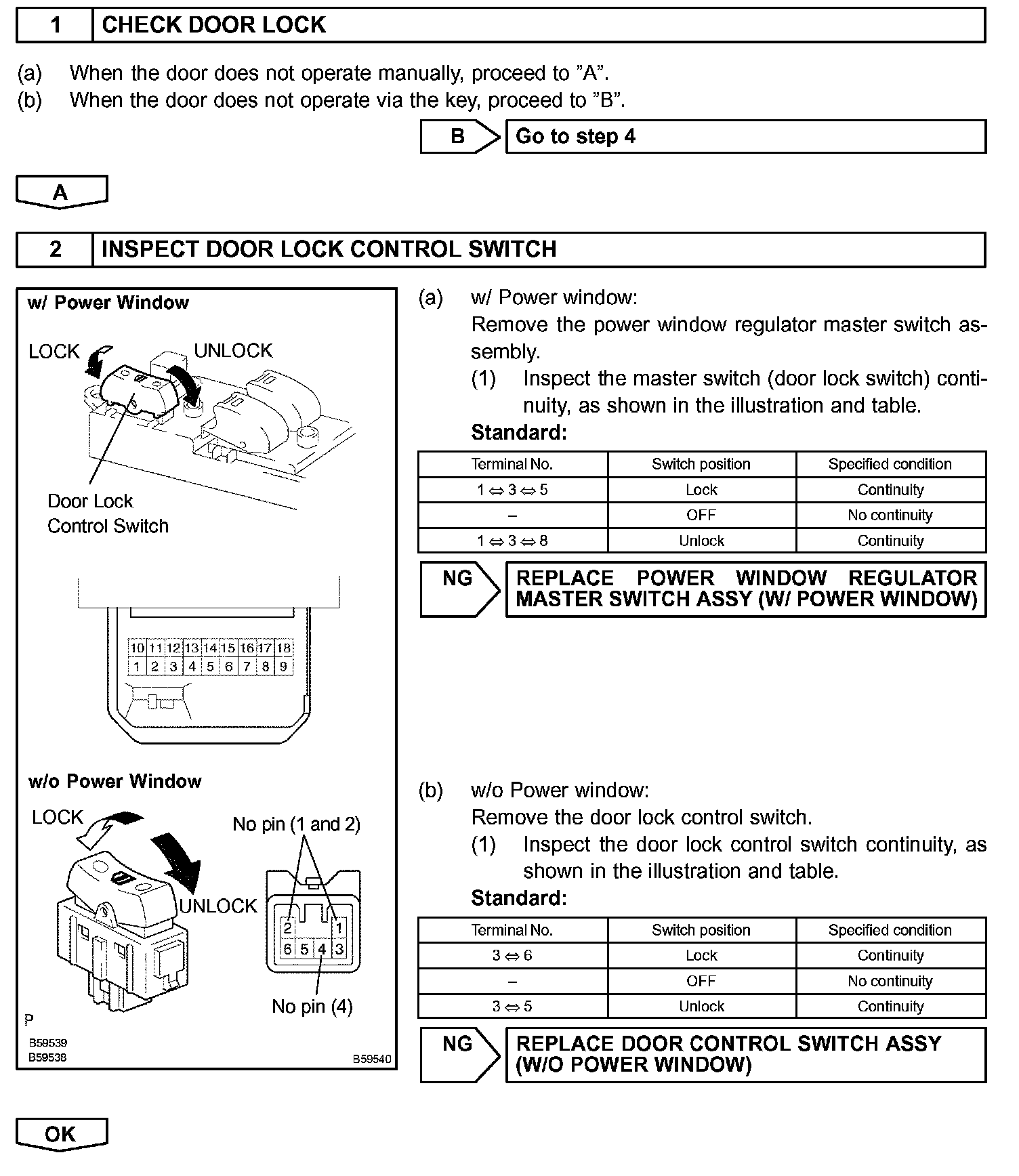 Door Lock/Unlock Don't Operate By Master Switch/Driver Door Key