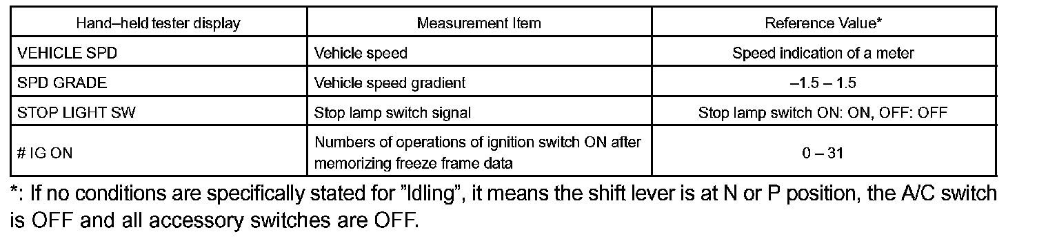 FREEZE FRAME DATAa. The vehicle (sensor) status at the occurrence of abnormality of the diagnosis code and during the ABS operating can be memorized and displayed using the hand-held tester.