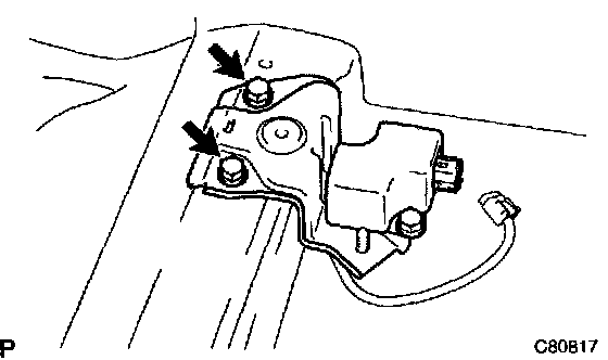 a. Disconnect the deceleration sensor connector from the deceleration sensor, then remove the 2 bolts and deceleration sensor with the anchor side deceleration sensor bracket.