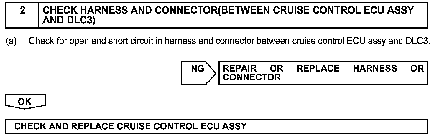 This circuit sends a signal to the cruise control ECU assy that DTC output is required.