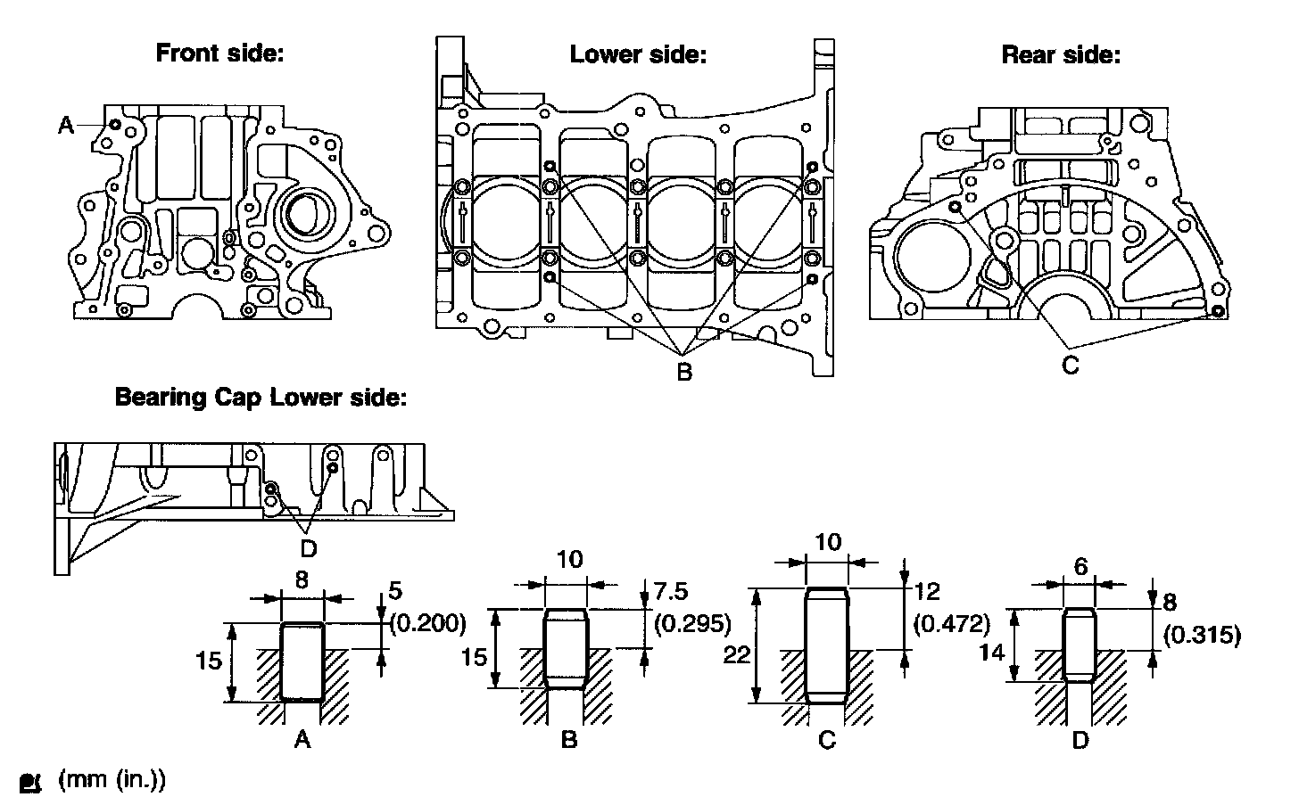 Stud bolt A, C, D and E 5.0 Nm (51 kgf-cm, 44 inch lbs.)