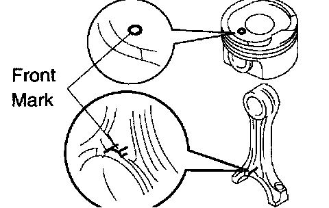 c. Align the front marks on the piston with connecting rod, and push in the piston with your thumb.