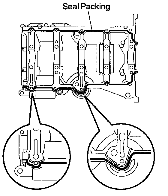 d. Apply seal packing in the shape of bead (Diameter 2.5 - 3.5 mm (0.098 - 0.139 inch) consequently as shown in the illustration.