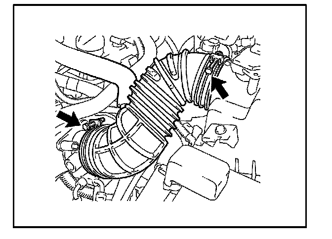E. Loosen the 2 hose clamp bolts, then remove the air cleaner hose No.1.