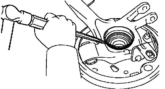 a. Using a chisel and a hammer, stake the rear axle shaft LH nut.