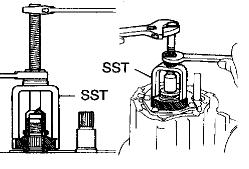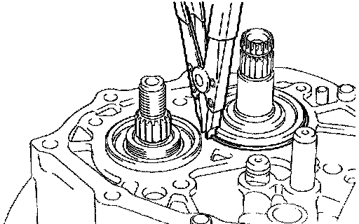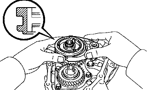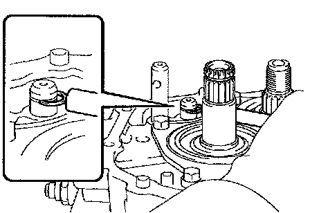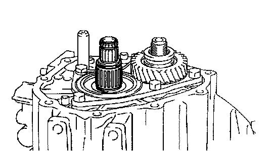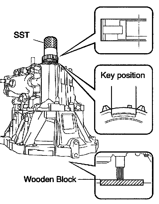 ^ When driving it in, fix the input shaft firmly so that it is not pushed downward. Otherwise, the input shaft rear bearing is over loaded, it might be damaged.