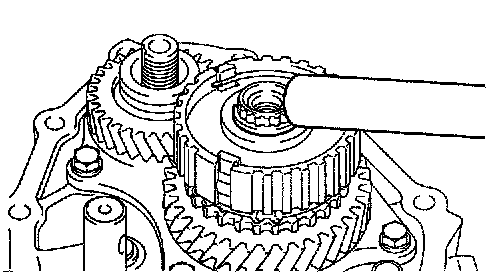 d. Using a brass bar and a hammer, install the snap ring to the input shaft.