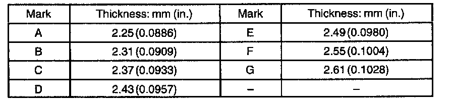 c. Select a snap ring from the table that will make the thrust clearance of the transmission clutch hub No. 3 below 0.1 mm (0.004 inch).