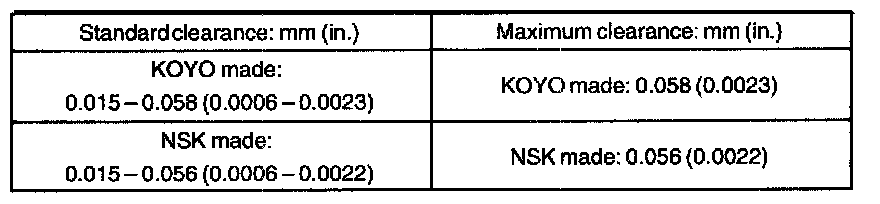 If the clearance exceed the maximum value, replace the gear, needle roller bearing or shaft.
