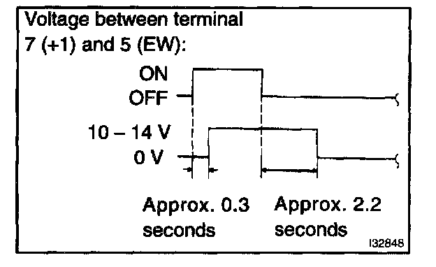 1. Connect the voltmeter (+) terminal to terminal 7 (+1) of the connector, the voltmeter (-) terminal to terminal 5 (EW) of the connector.