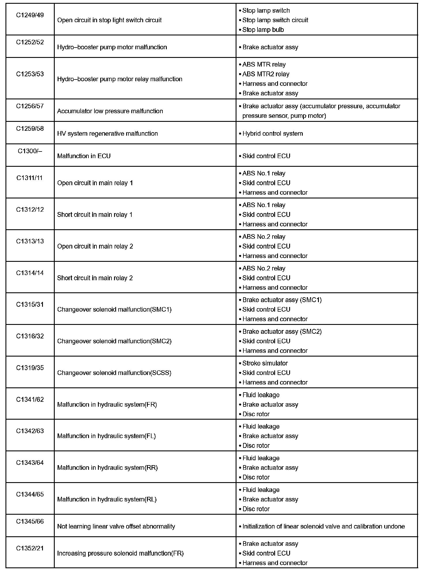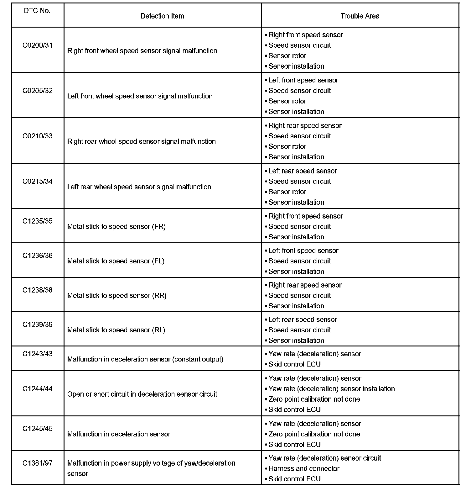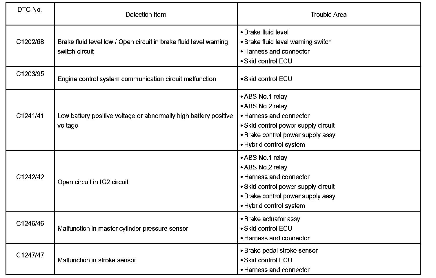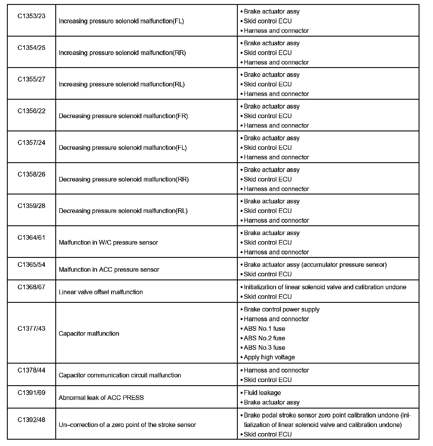 DTC chart of ABS