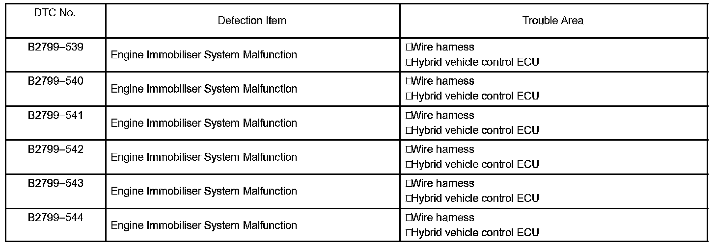 NOTE: The DTCs for the immobilizer system are specified above. If the other codes are output, check the DTCs chart for the hybrid control system.