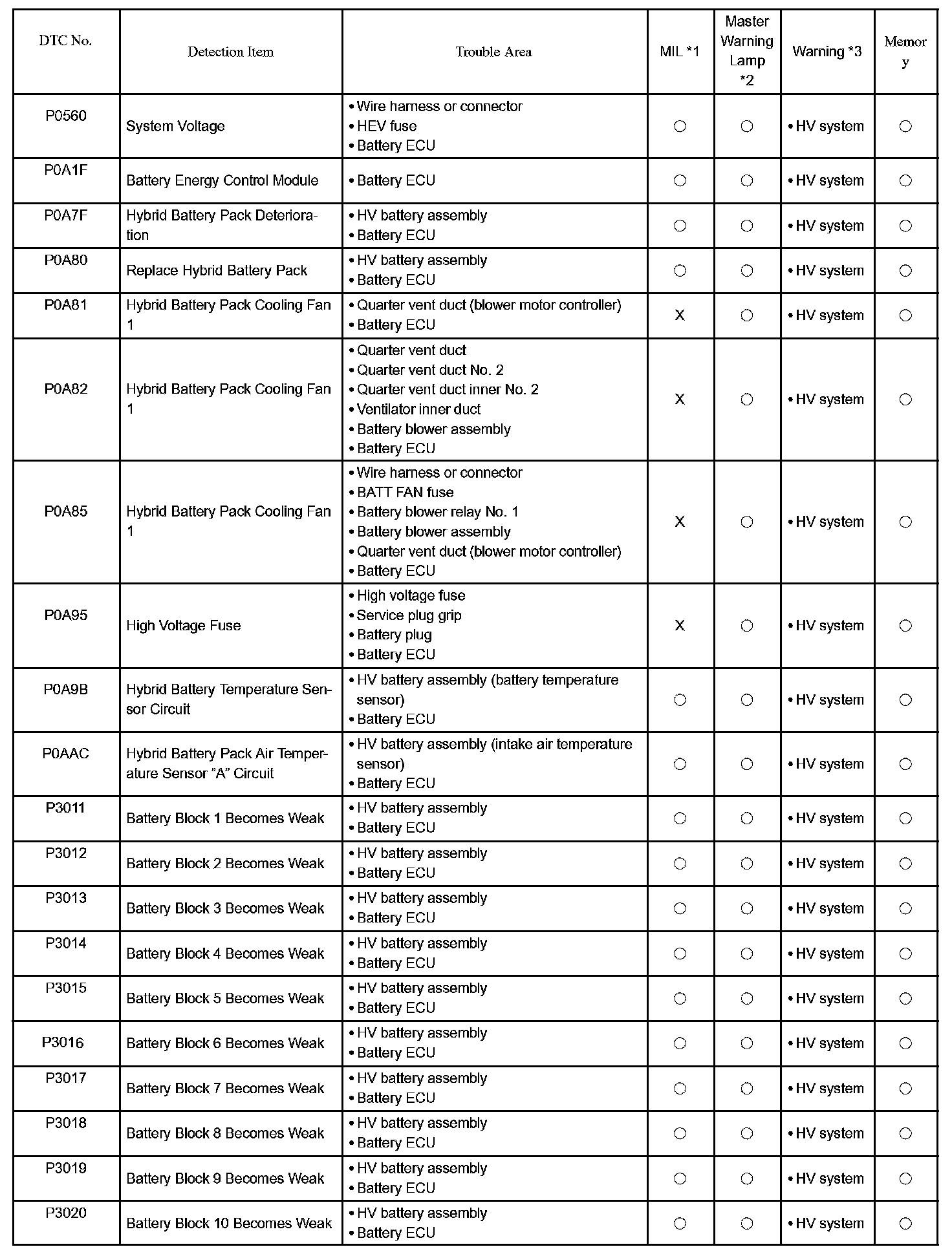 A L L Diagnostic Trouble Codes ( DTC )