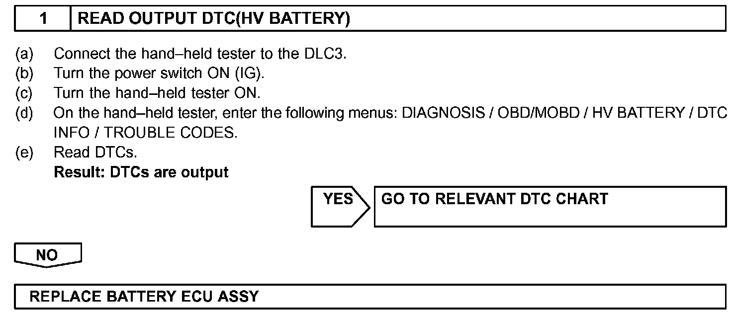 Upon receiving an abnormal signal input from the battery ECU, the HV control ECU illuminates the MIL and sets a DTC.
