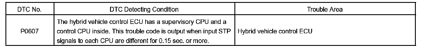 DTC 0607 is stored when an internal abnormality of the hybrid vehicle control ECU is detected.