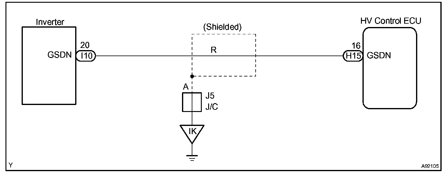 Upon receiving a generator gate shutdown signal from the HV control ECU, the inverter forcefully stops the operation of the MG1 by turning OFF the power transistors that are actuating the MG1. The HV control ECU monitors the generator inverter gate and detects malfunction.