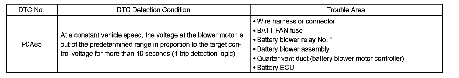 DTC P0A85 HYBRID BATTERY PACK COOLING FAN 1CIRCUIT DESCRIPTION