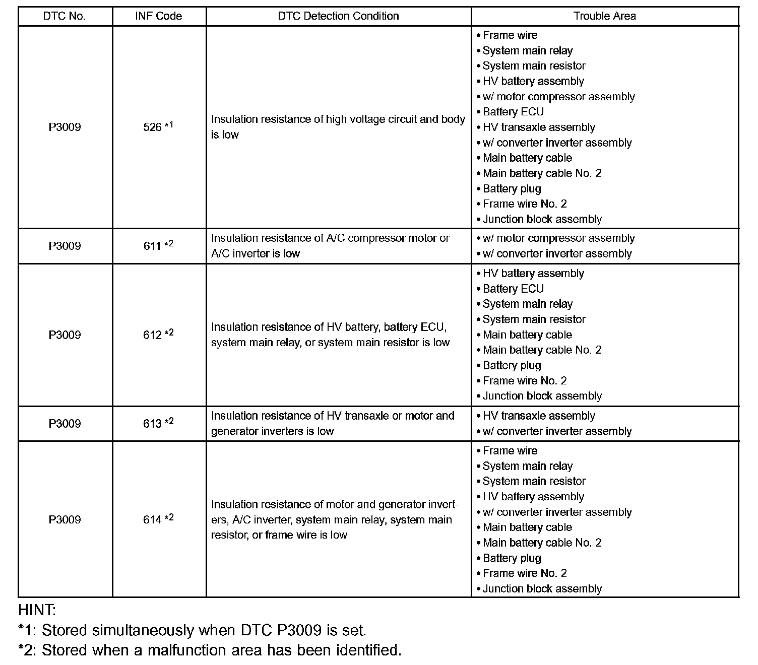 DTC P3009/614 HIGH VOLTAGE POWER SHORT CIRCUITDTC Detection Condition:
