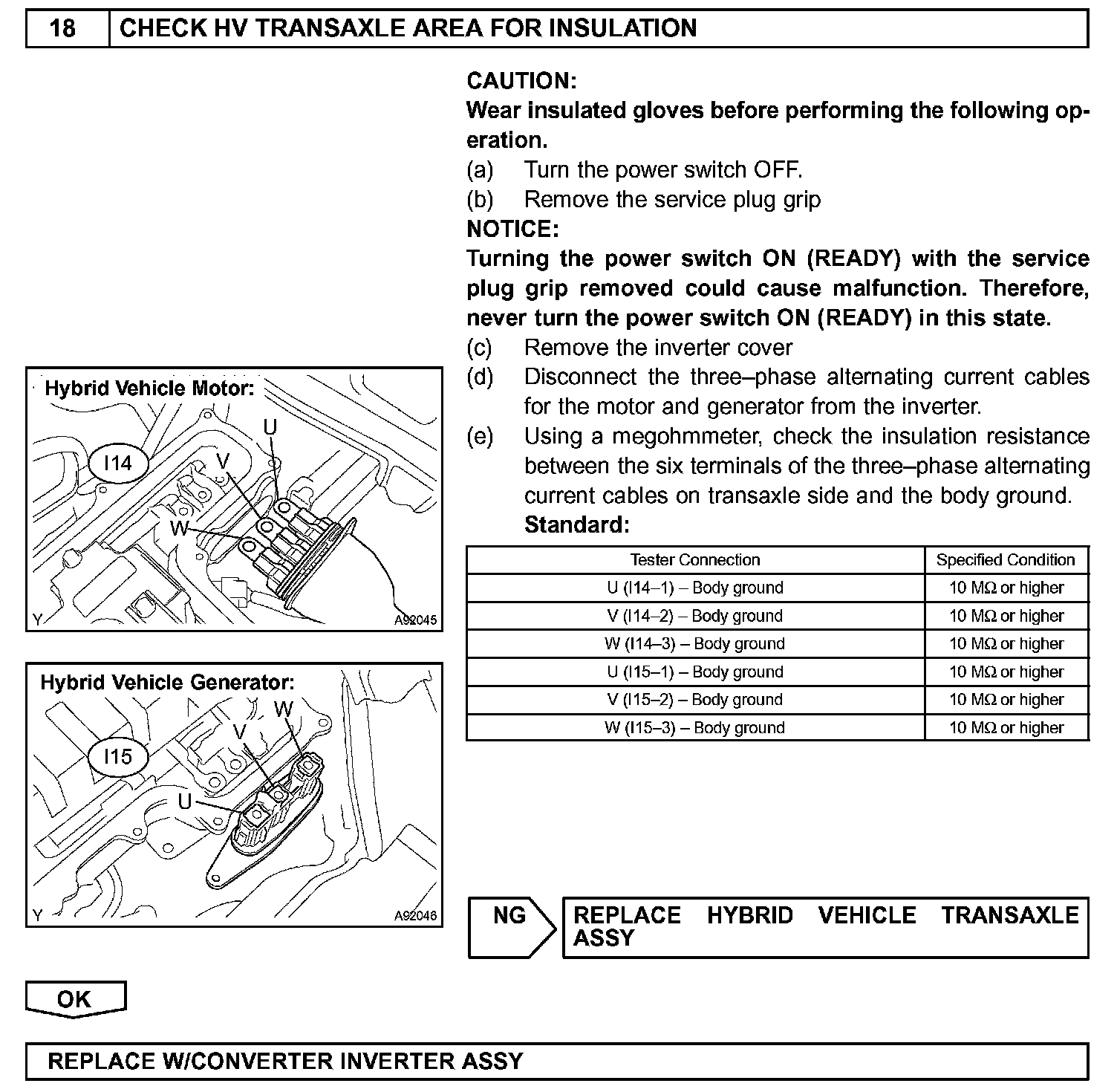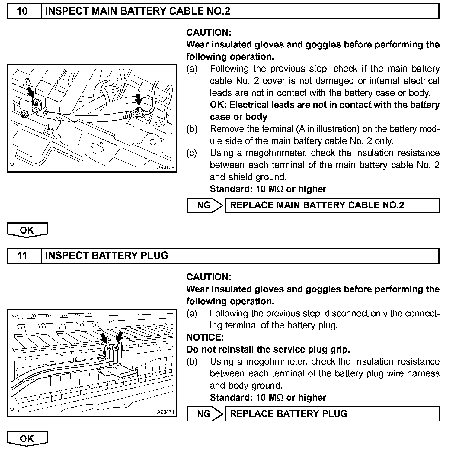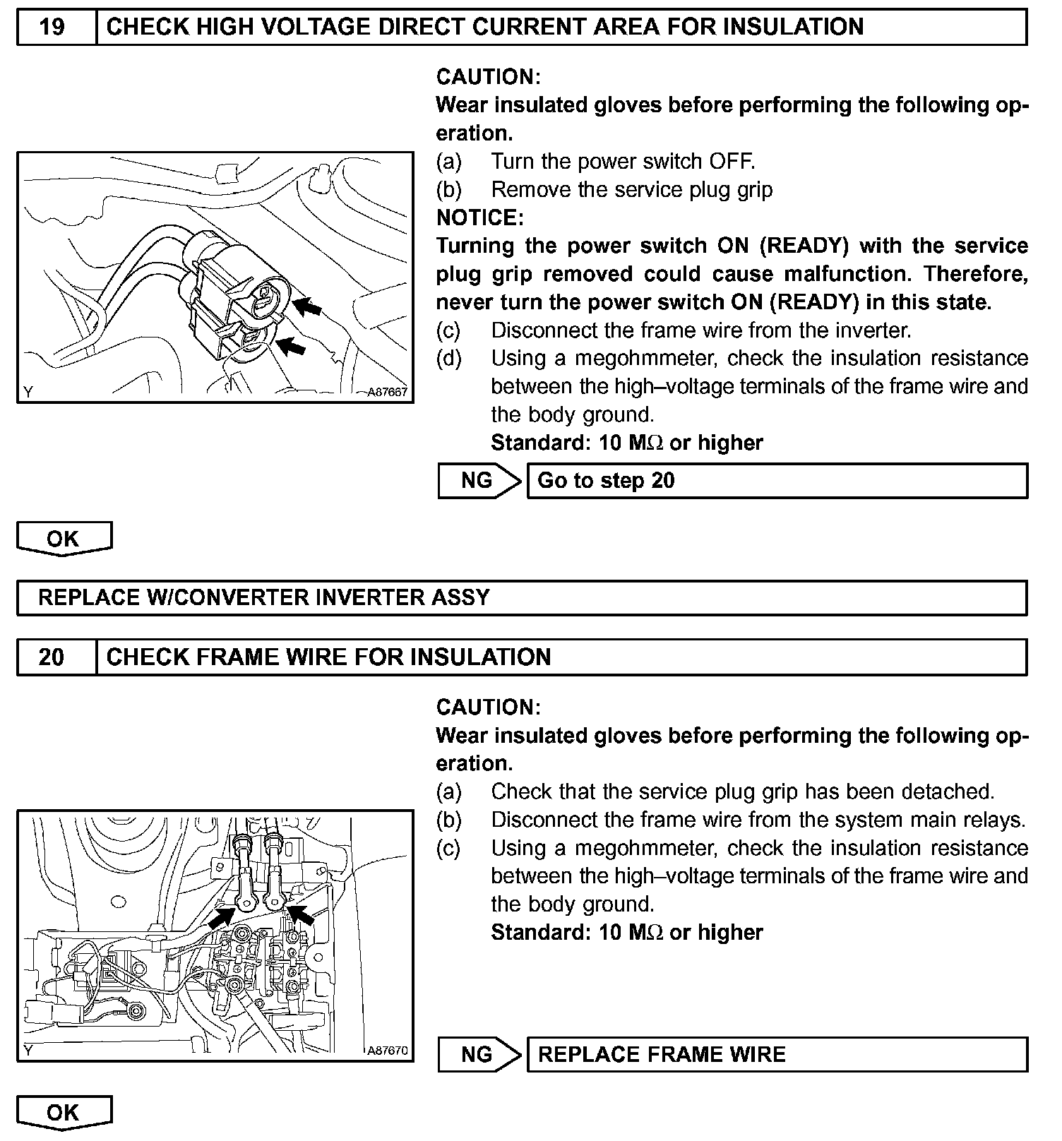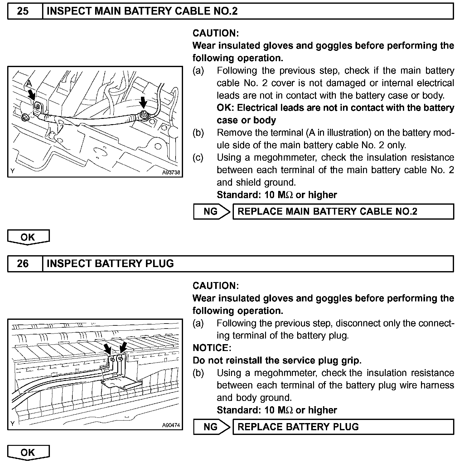 - Before inspecting the high-voltage system, take safety precautions to prevent electrical shocks, such as wearing insulated gloves and removing the service plug grip. After removing the service plug grip, put it in your pocket to prevent other technicians from reconnecting it while you are servicing the high-voltage system.