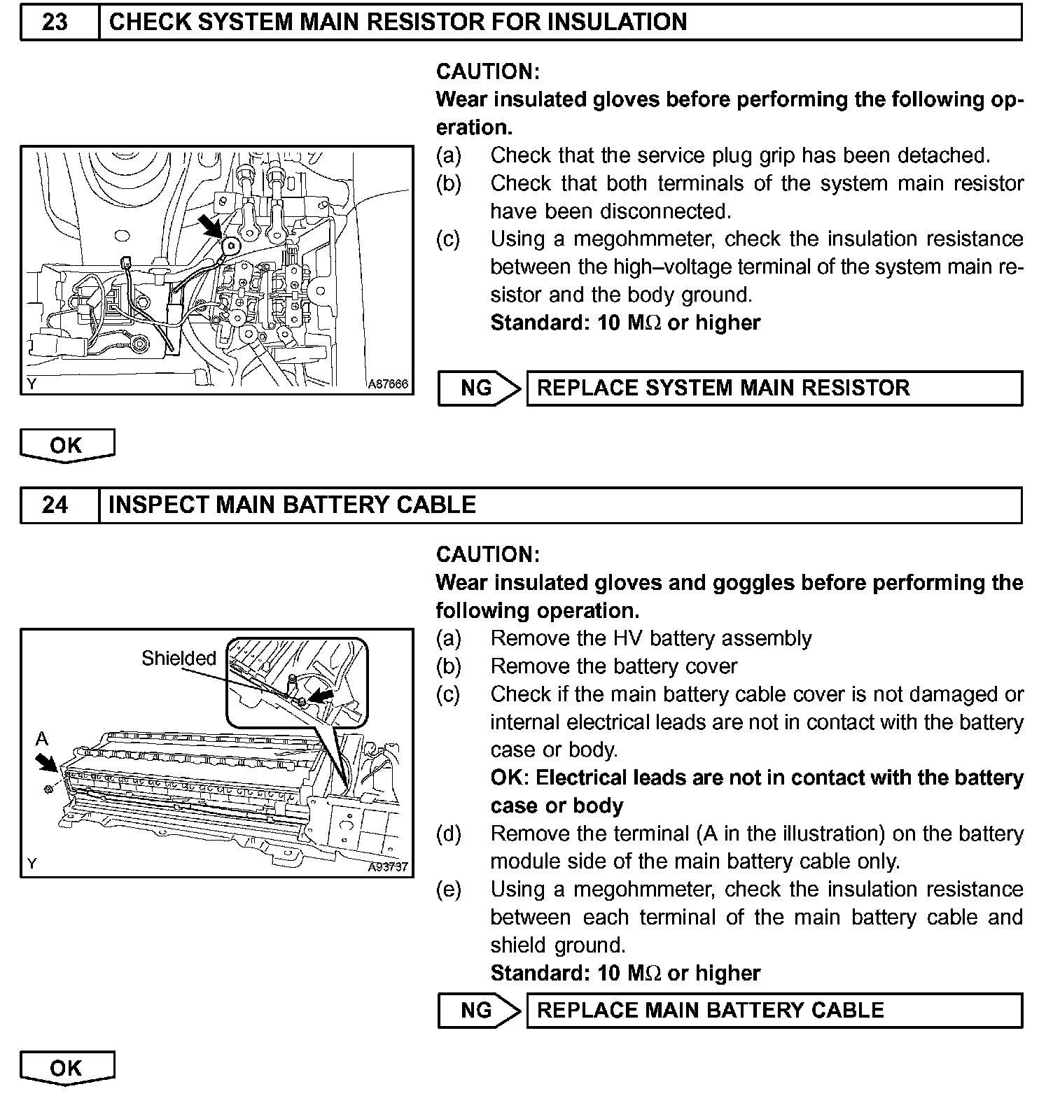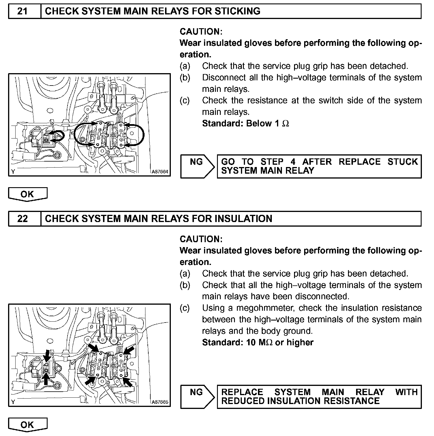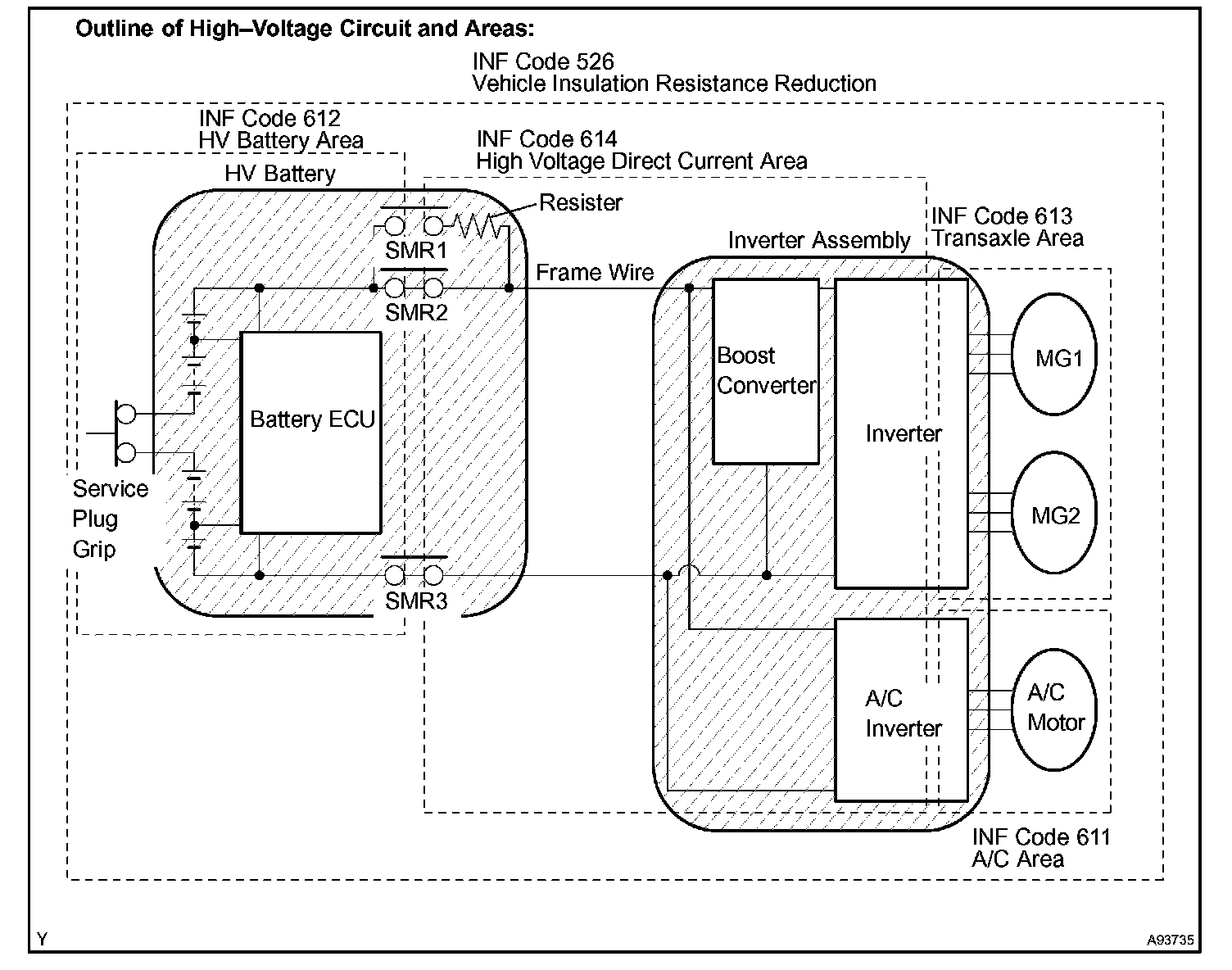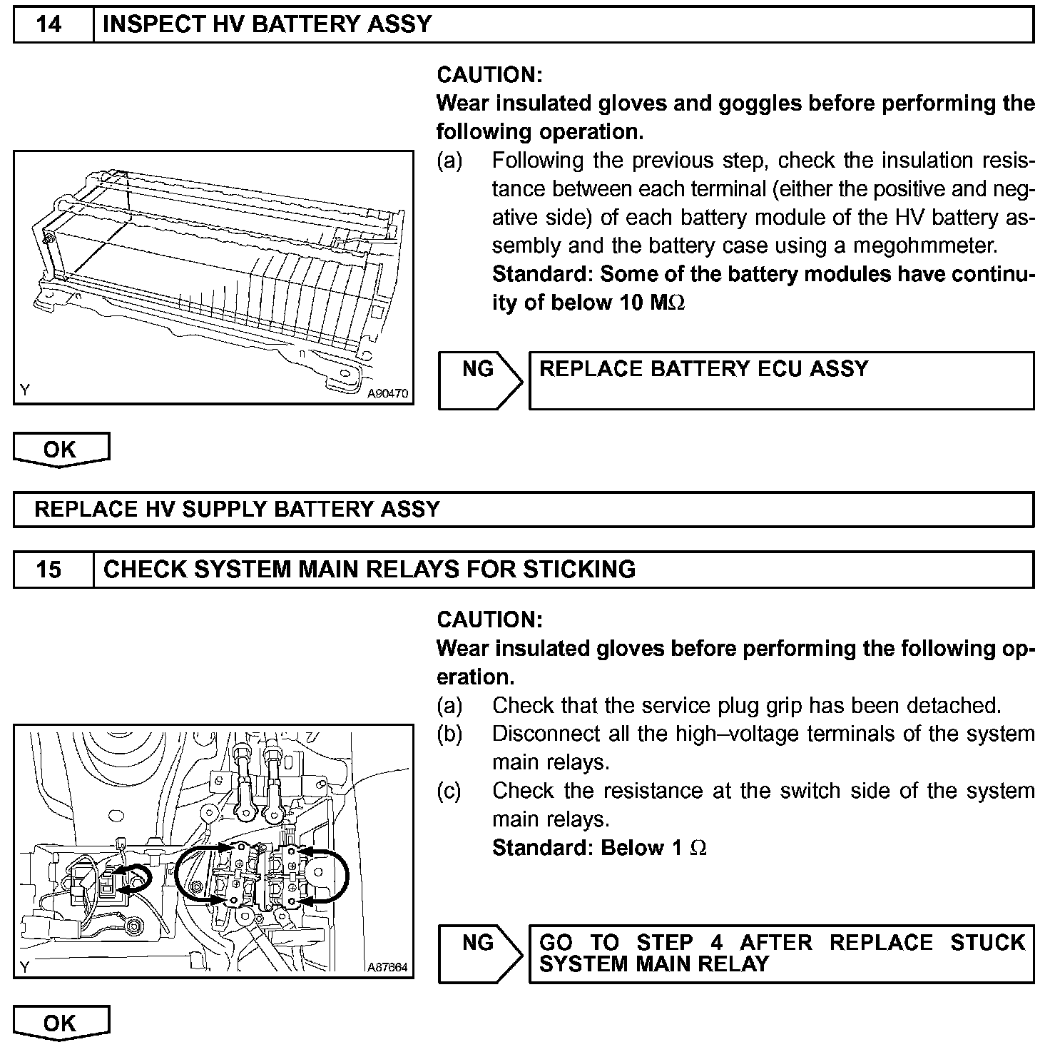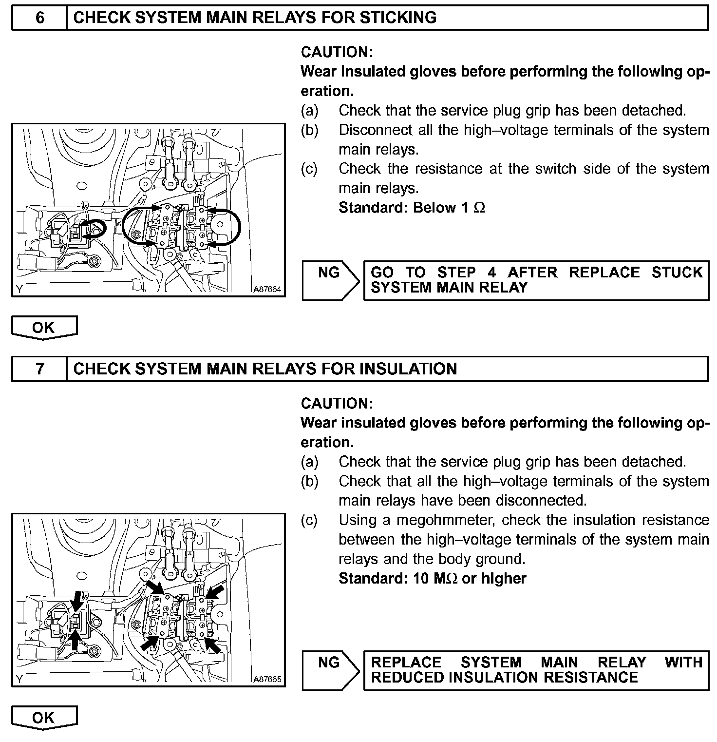 - Before inspecting the high-voltage system, take safety precautions to prevent electrical shocks, such as wearing insulated gloves and removing the service plug grip. After removing the service plug grip, put it in your pocket to prevent other technicians from reconnecting it while you are servicing the high-voltage system.