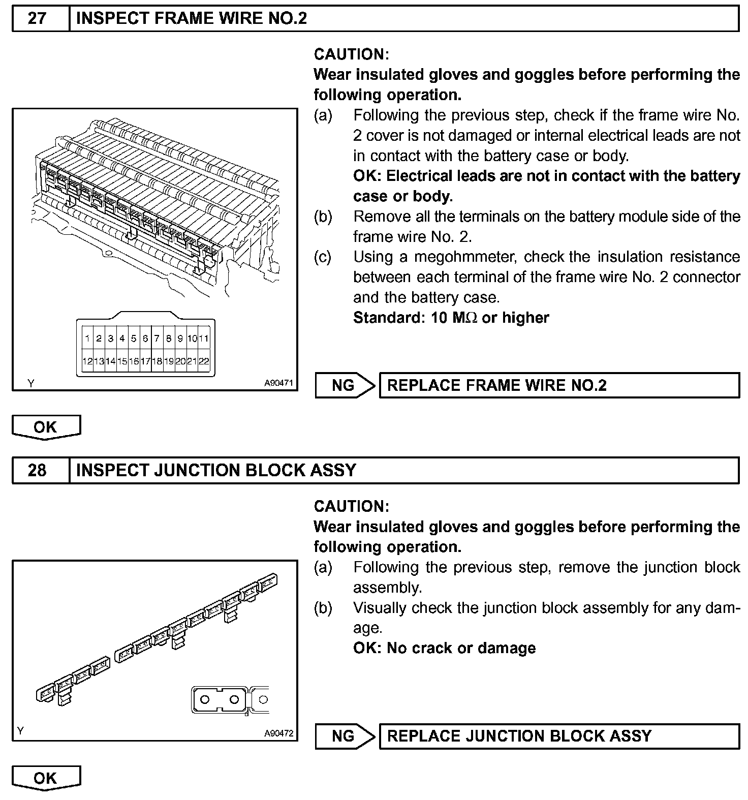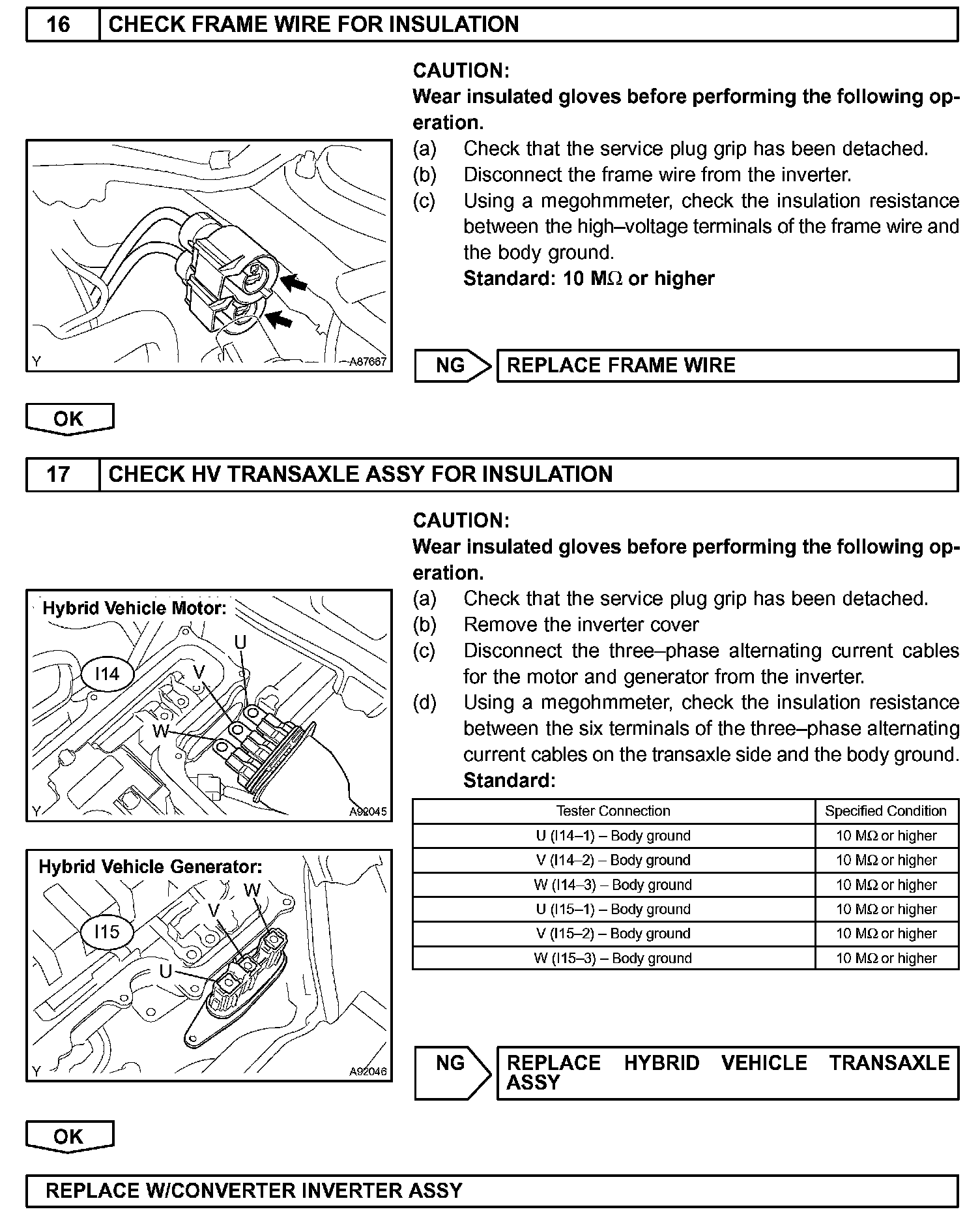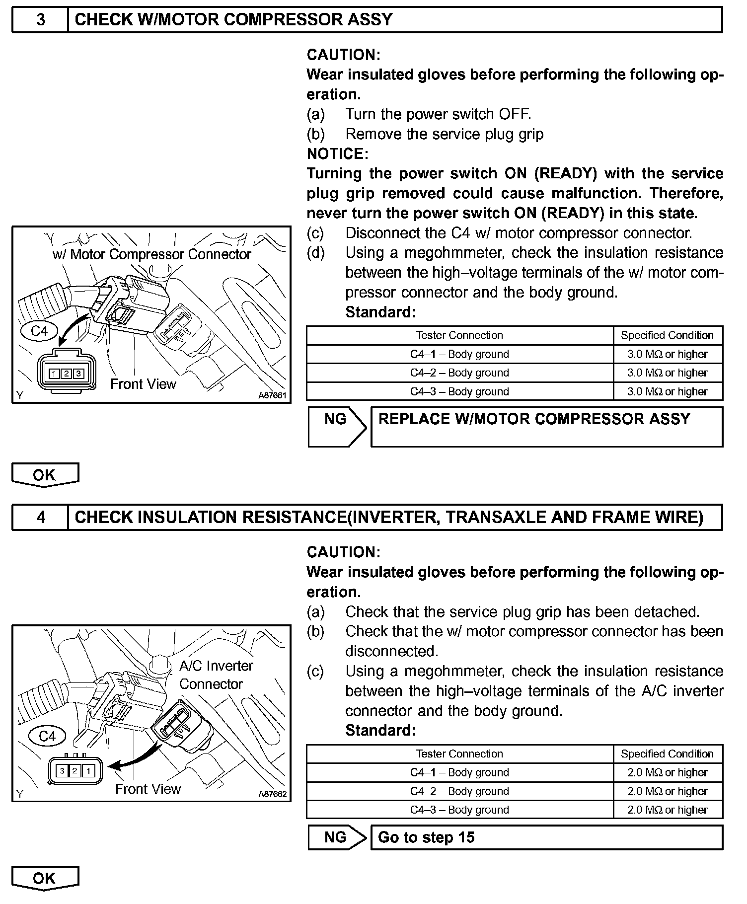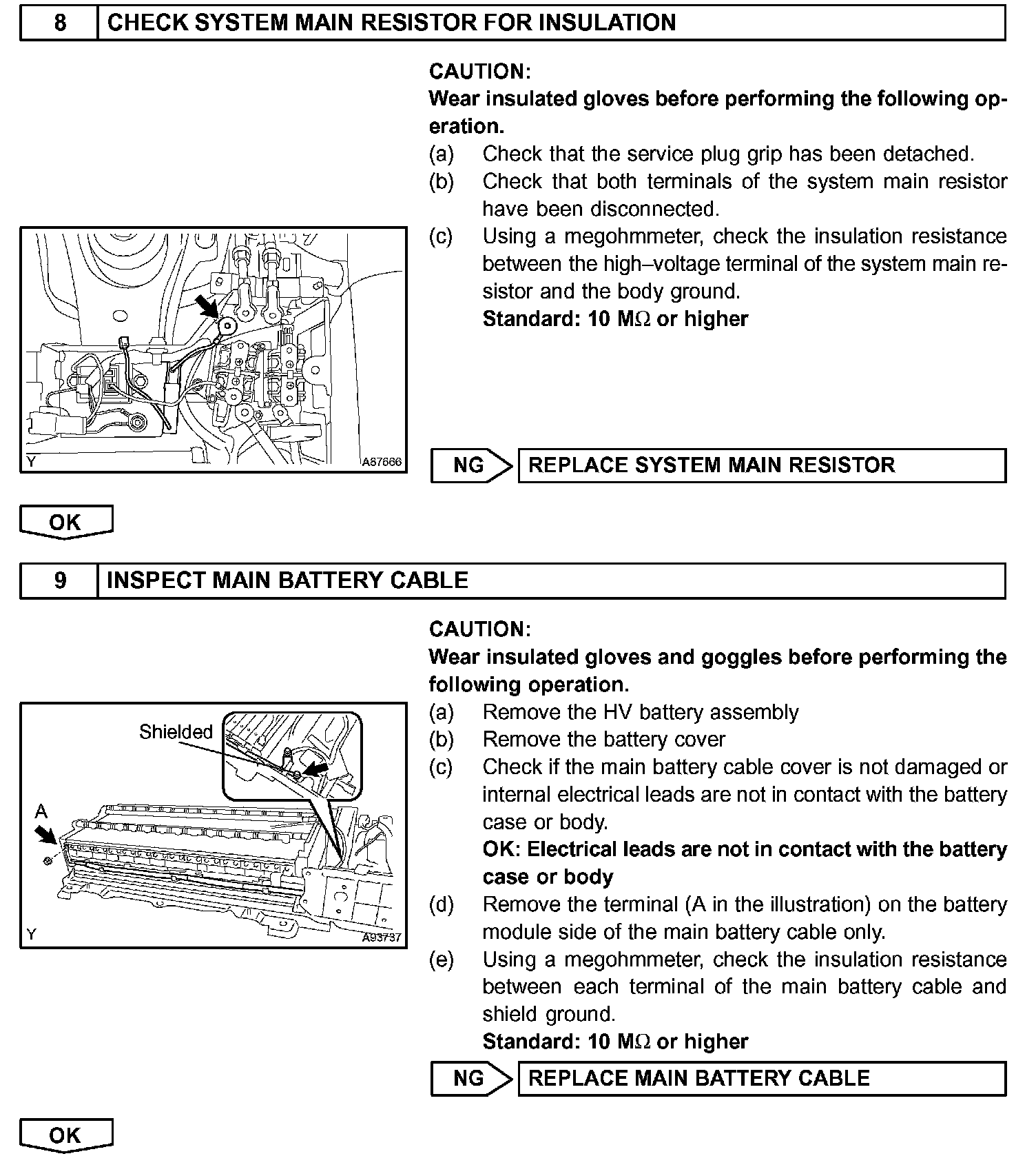 - Before inspecting the high-voltage system, take safety precautions to prevent electrical shocks, such as wearing insulated gloves and removing the service plug grip. After removing the service plug grip, put it in your pocket to prevent other technicians from reconnecting it while you are servicing the high-voltage system.
