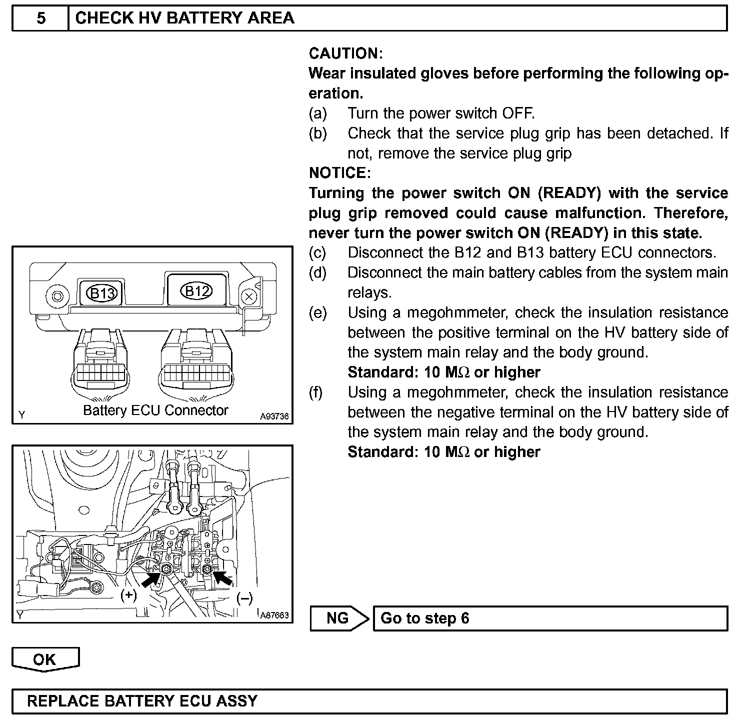 - After disconnecting the service plug grip, wait for at least 5 minutes before touching any of the high-voltage connectors or terminals.