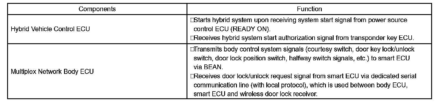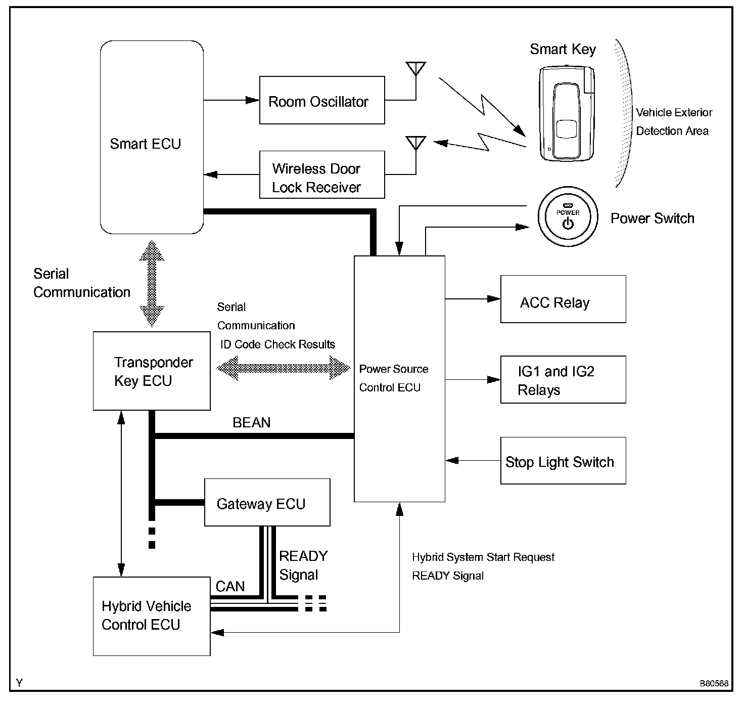 - Upon receiving this signal, the hybrid vehicle control ECU verifies the check results of the smart key ID code provided by the transponder key ECU.
