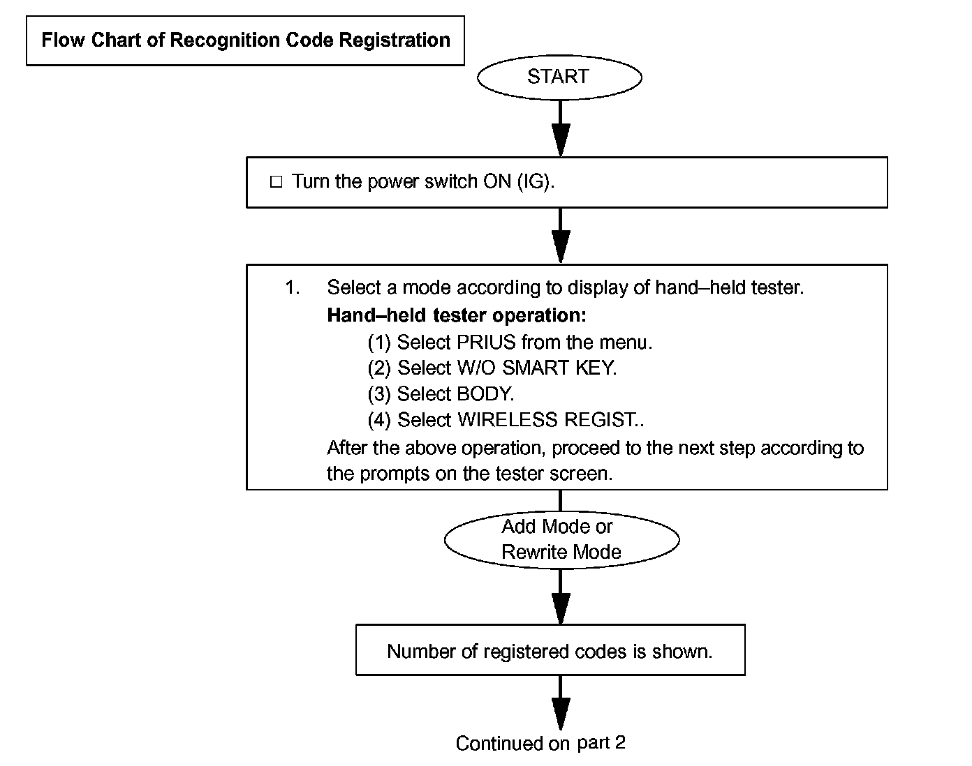 - The confirmation mode is used to confirm how many recognition codes have already been registered before registering any additional recognition codes.
