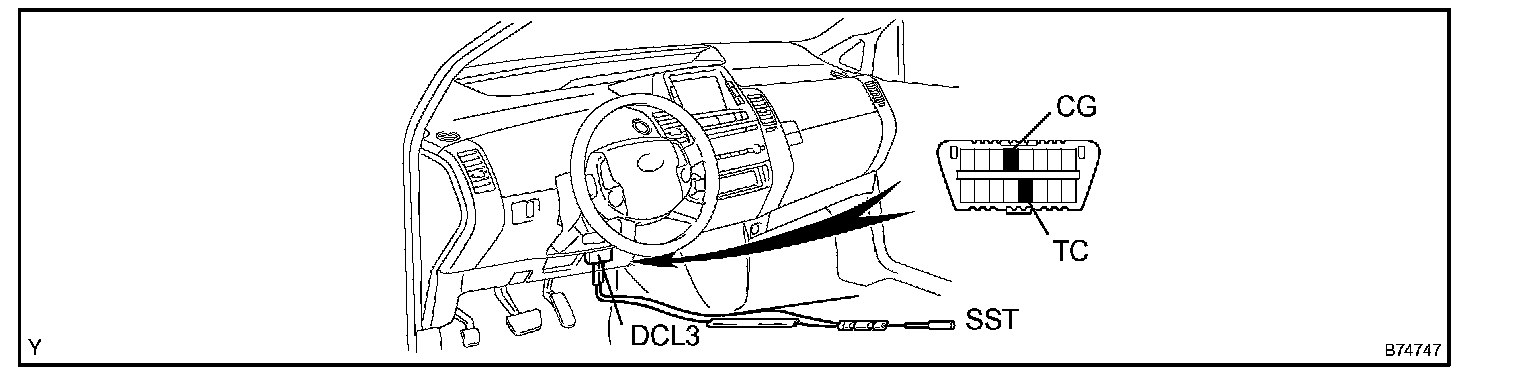 1. Using SST, connect terminals TC and CG of the DLC3.