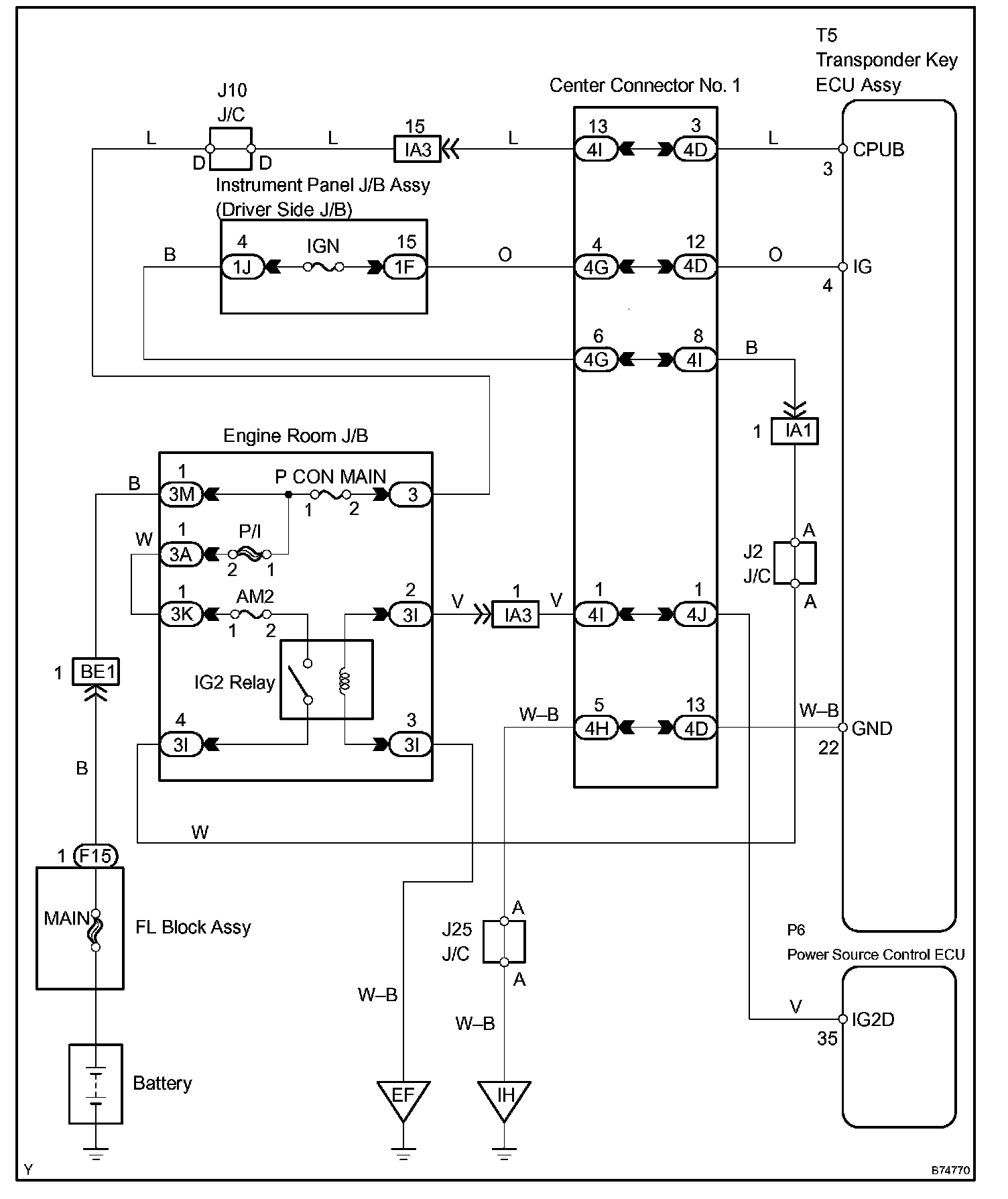 This circuit provides power to operate the transponder key ECU assy.