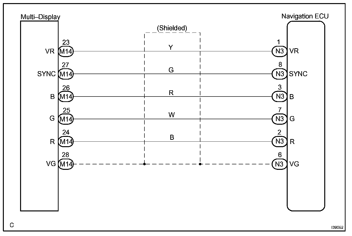 This is the display signal circuit from the navigation ECU to the multi-display.