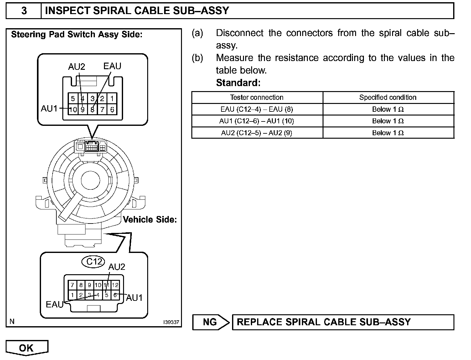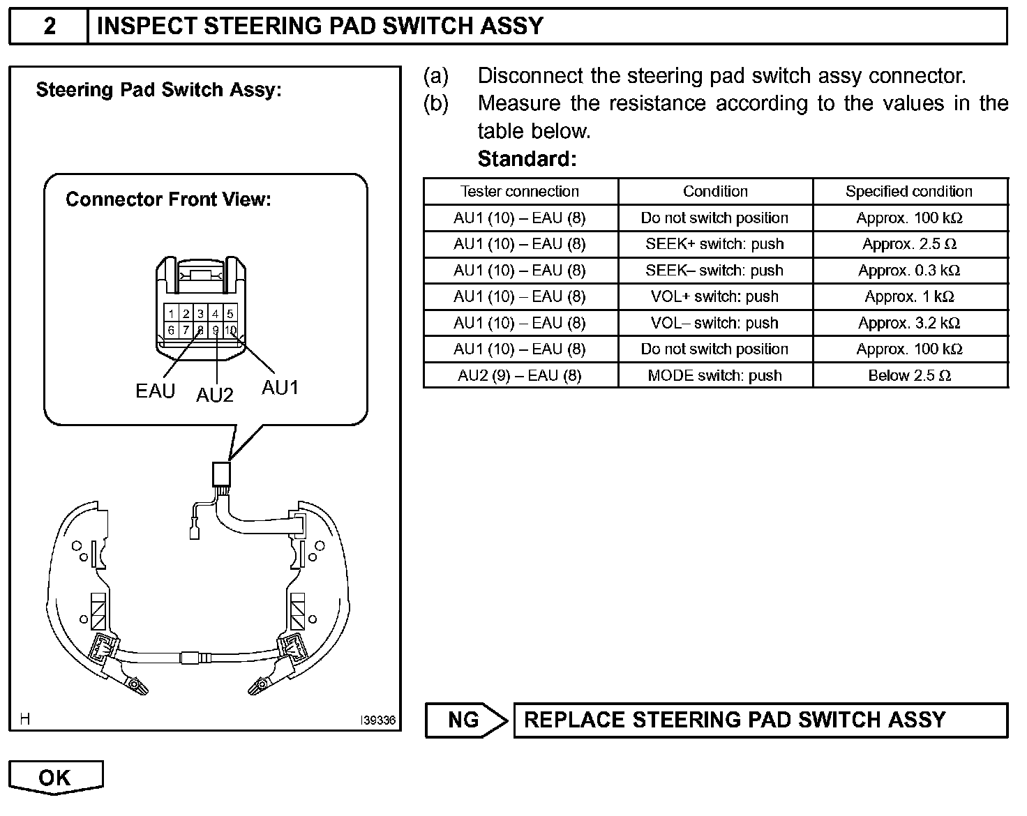 If there is an open in the circuit, the audio system cannot be operated by the steering pad switch.