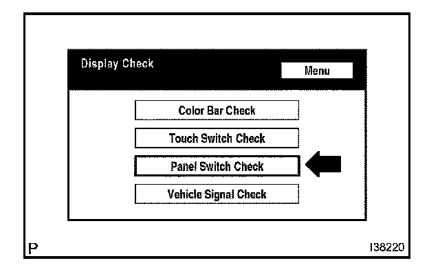 3. Select "Panel Switch Check" from the "Diagnosis MENU ("Display Check")" display.