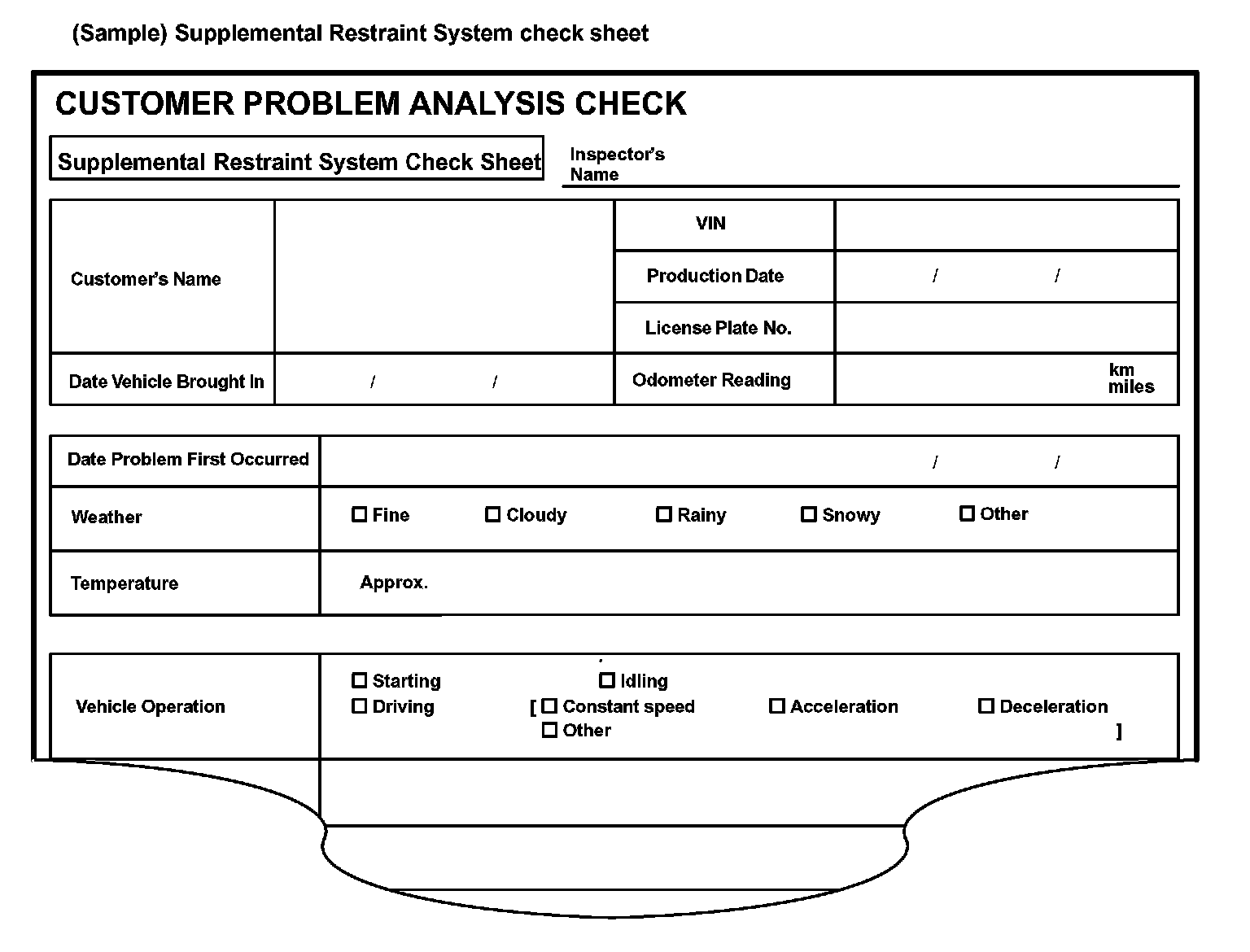 (Sample) Supplemental Restraint System check sheet