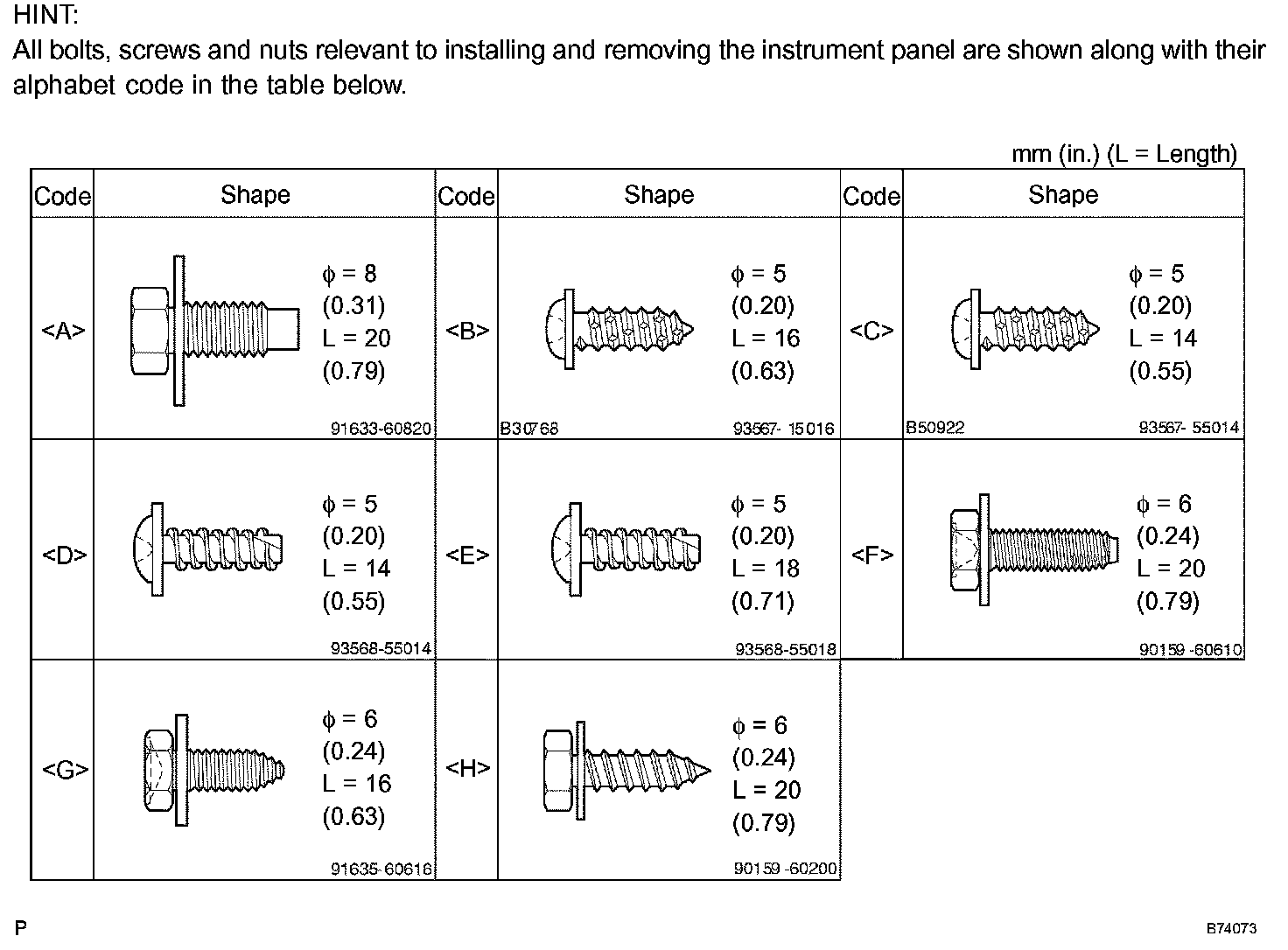 1. TABLE OF BOLT, SCREW AND NUT
