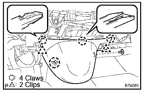 a. Disengage the 2 claws and then remove the instrument panel under cover sub-assy No.1.