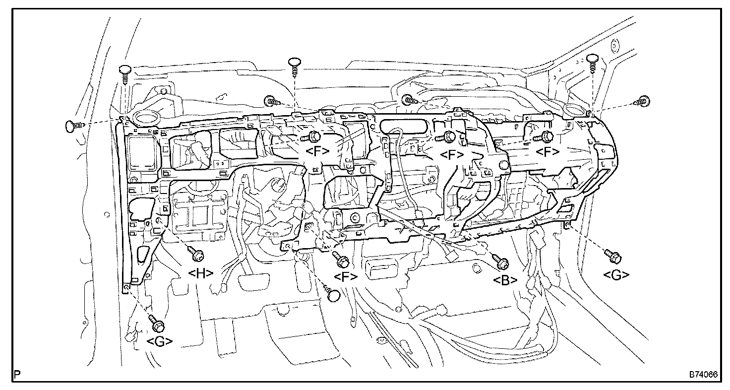 d. Disconnect all connectors, and disengage all clamps. Make sure the wire harness is not caught on anything, and then remove the instrument panel sub-assy lower.