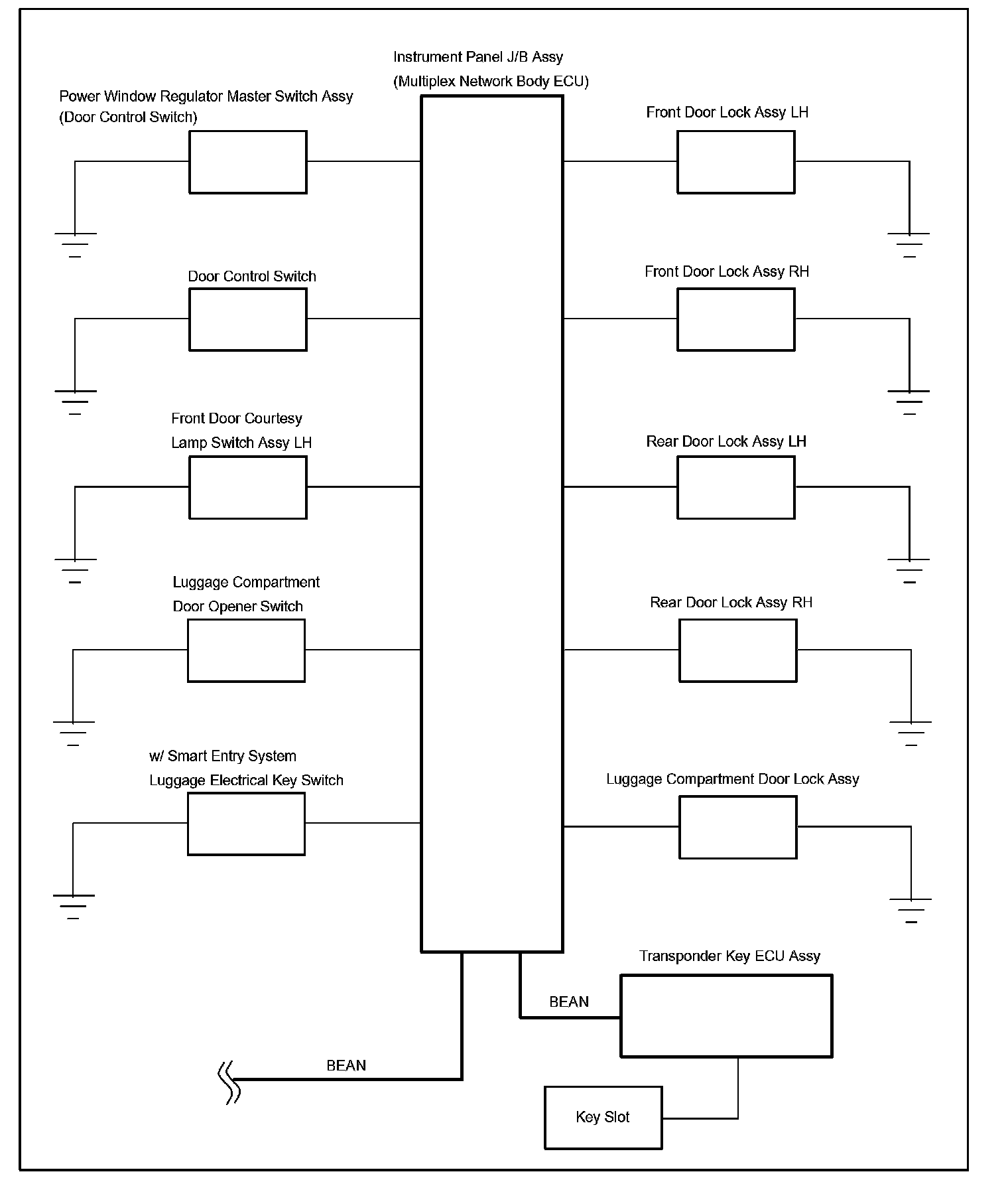 - This system is controlled by the body ECU. The body ECU outputs signals to each door lock motor.