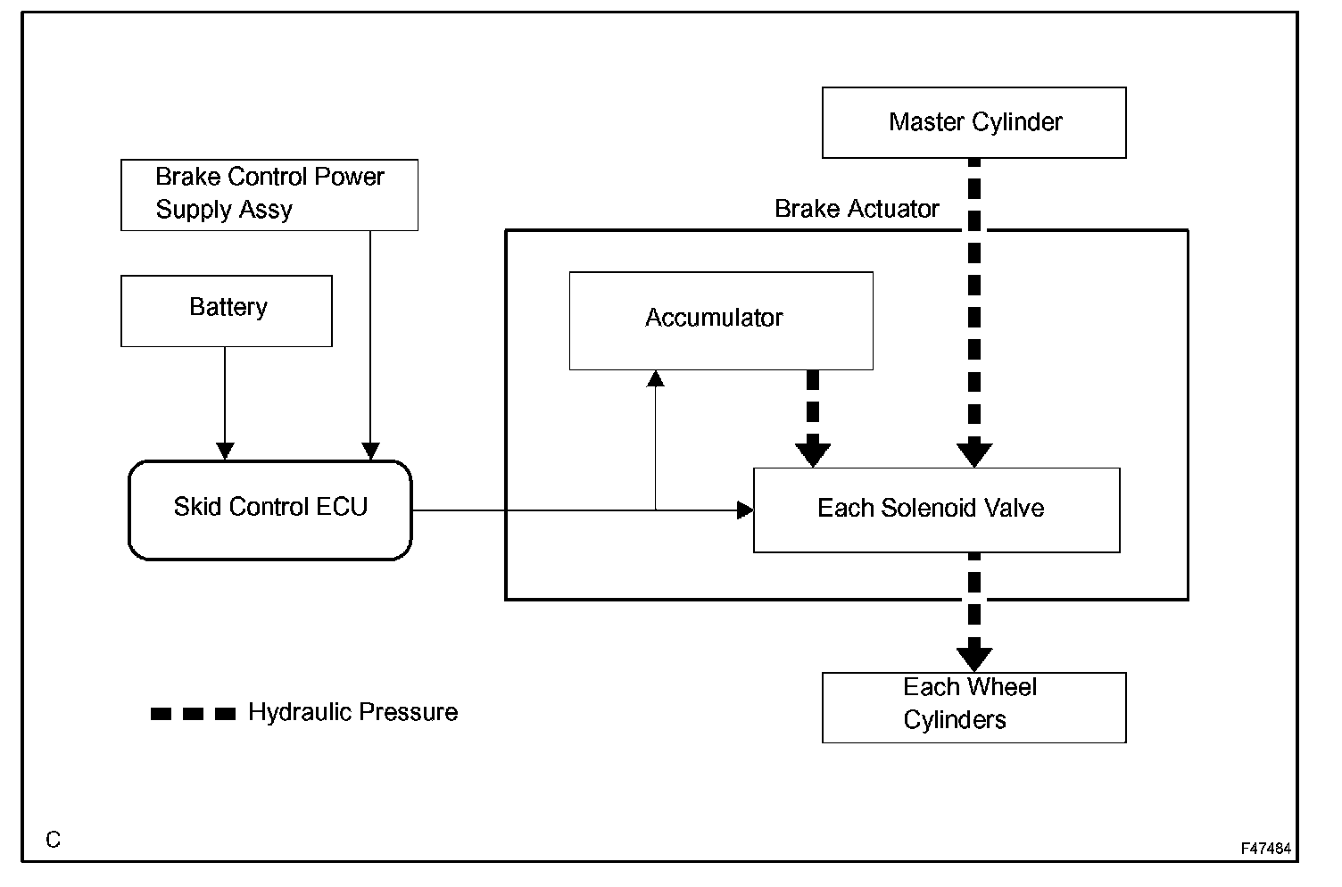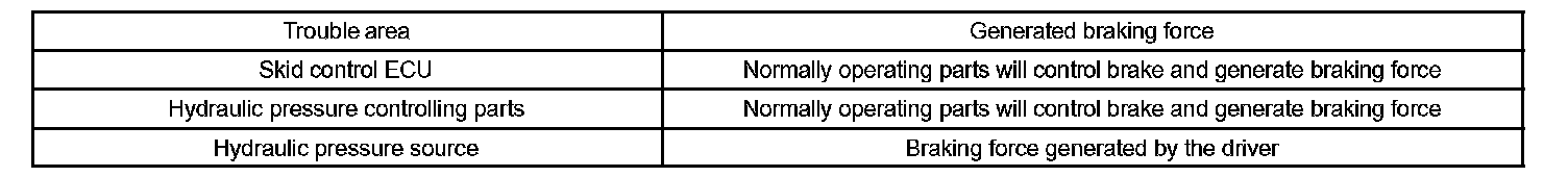 a. If a malfunction occurs in the skid control ECU, sensor signal, or actuator, rest normally operating parts will maintain brake control.