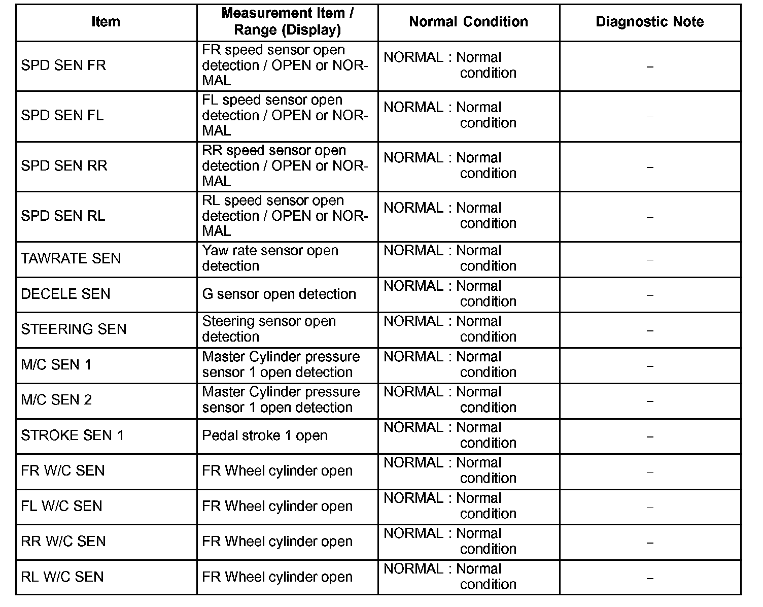 - If the status remains on, check the continuity between the ECU and the sensors, or between ECUs.