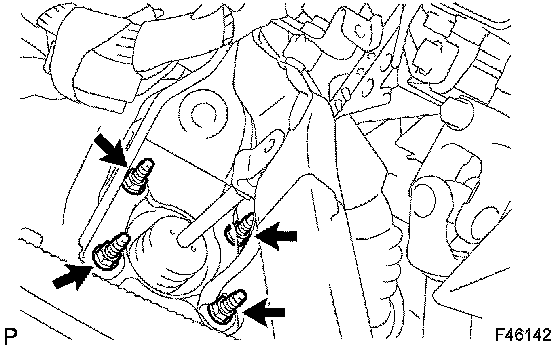 d) Remove the 4 nuts and the brake pedal support sub assy.