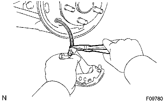 NOTICE: There should be no oil or grease adhering to the friction surfaces of the shoe lining and the drum.